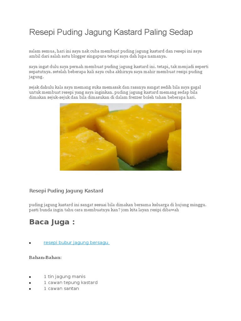 Resepi Puding Kastard Dengan Jagung Manis Sangat Sedap Rasanya Daridapur Com